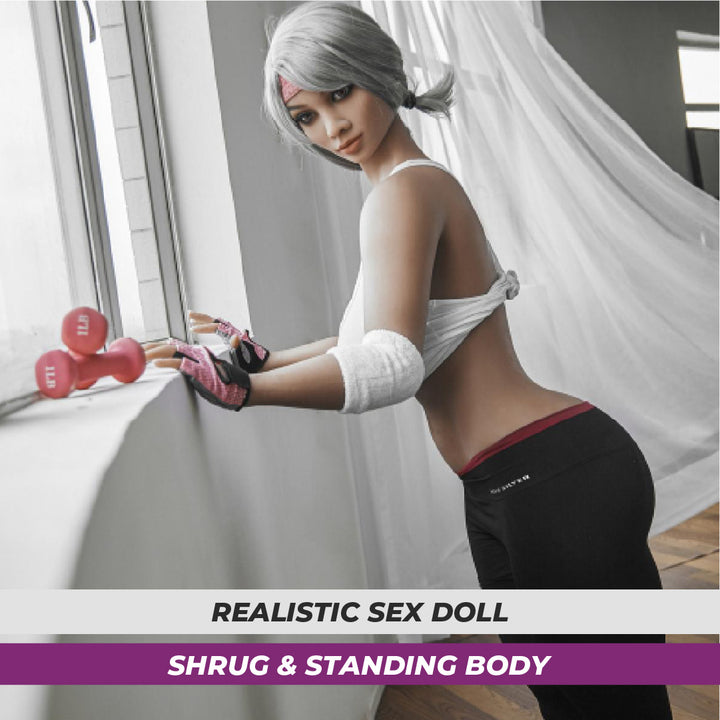 Die Textur dieser Schönheit aus hochwertigem TPE sieht aus und fühlt sich an wie echte Haut - sie fühlt sich weich an und gibt leicht nach, wie echte Haut. Realistische Größe - kann in weiche Kleidung gekleidet werden, um Ihre Fantasien zu verwirklichen.