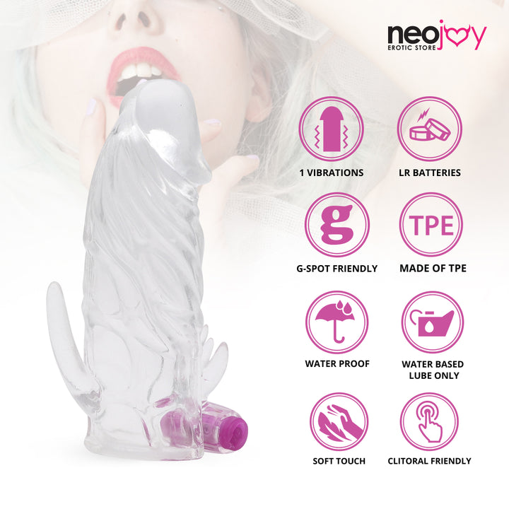 Neojoy Multi-Sleeve - Gelee-Penis-Extender mit klitorisierendem Kugelvibrator - realistischer vibrierender Hahn-Vergrößerer - Ausdauer, die Paar-Sex-Spielzeug verbessert