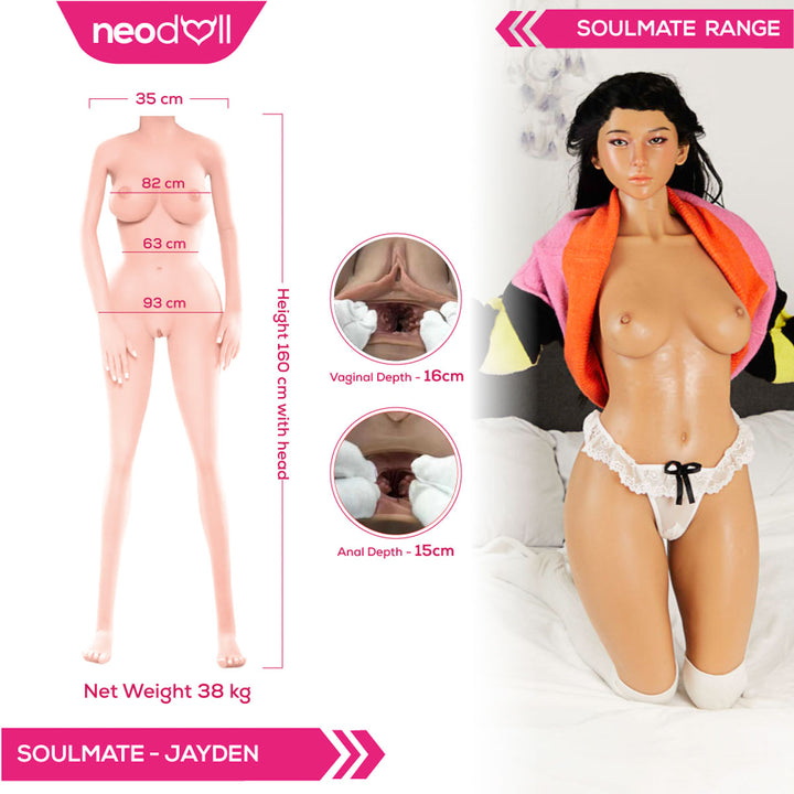 Jayden aus der Soulmate- Serie ist eine atemberaubende Vollsilikon-Sexpuppe für alle, die Schönheit und Realismus gleichermaßen schätzen. Mit ihrer makellosen Silikonhaut und lebensechten Gesichtszügen, einschließlich implantiertem Haar, bietet Jayden ein wahrhaft intensives Erlebnis. Ihr eleganter, kurvenreicher Körper, die Gelbrüste und die strukturierten Vaginal- und Analkanäle sorgen für intensive Stimulation, während ihr Schulterskelett realistische Schulterbewegungen ermöglicht und so die Bewegungen einer echten Frau nachahmt.